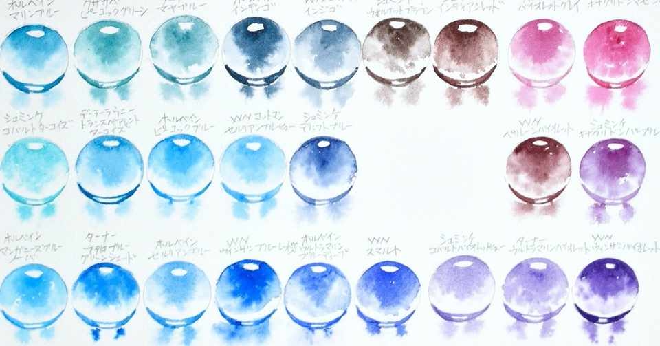 手持ちの水彩絵具をガラス玉イラストで一覧にしてみた 澤村直 Note
