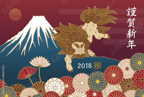 和風 戌年 狛犬と富士山の年賀状イラスト Buy This Stock Vector And